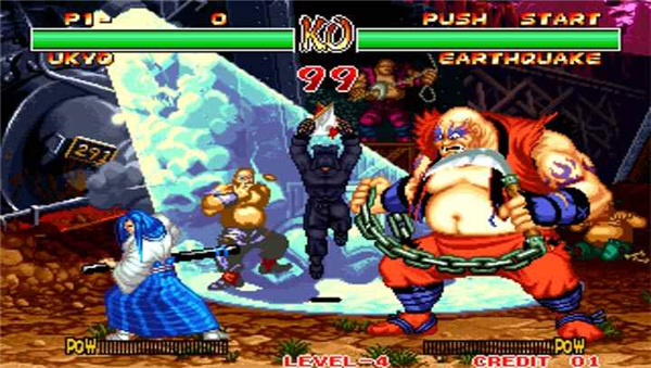 游戏《侍魂2》的玩法也跟游戏机上一模一样,在游戏左下角玩家通过操作摇杆来控制人物动作,右下角设置有4个按键,分别控制拳,脚,放宝和暴气。简洁的按键操作可以让玩家在游戏中更加直接方便地体验到格斗的乐趣。