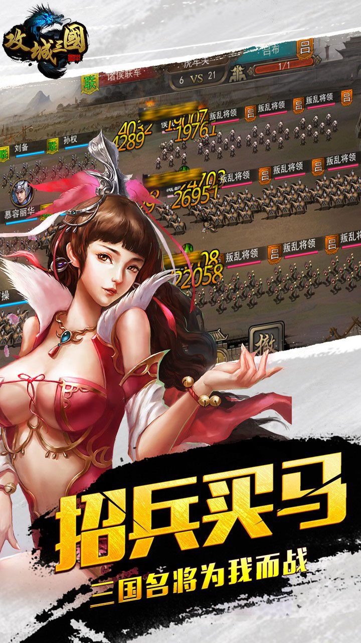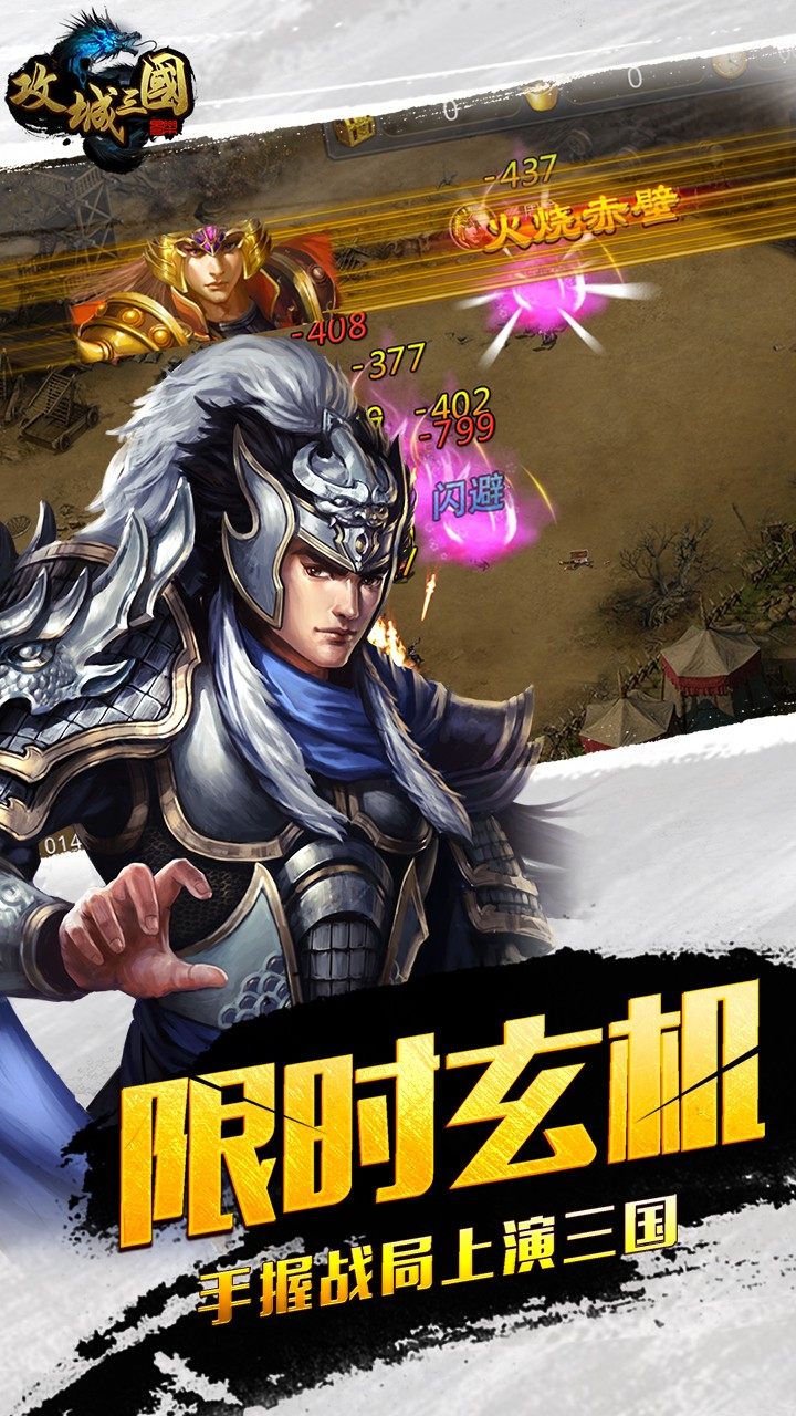 招兵买马,攻城掠地。《攻城三国》是一款战斗策略游戏,在游戏中,您将扮演三国乱世中的一名诸侯,率领千军万马迎战诸路强敌,体验精彩绝伦的史诗战役。一座座城池正在等待您的解放,一个个名动天下的武将正在静待您的召唤。攻城掠地,安邦立国,您准备好了吗?