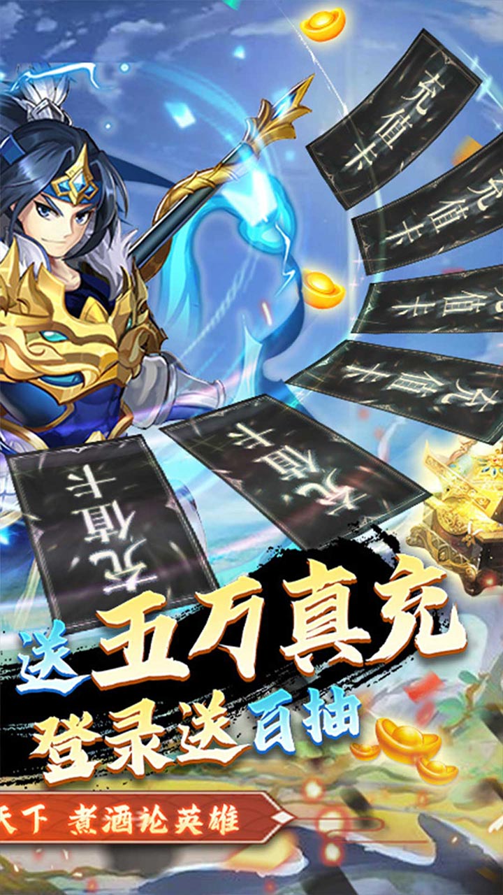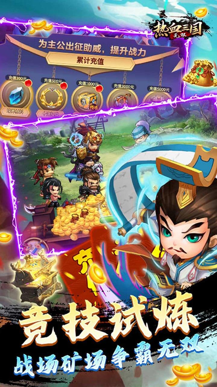 《热血三国无双(送5W真充)》是一款Q萌好玩的三国题材卡牌回合手游。画面精美,人物可爱,打造炫酷大招及个性造型,战斗场景震撼视觉,给你一个乱世纷争何时休,征战无双几度秋的世界。还可以有三千世界鸦杀尽,与君共寝到天明的铁骨柔情。放置战斗,指尖冒险,竞技PK、英雄试炼、战场挑战、皇陵探险、争霸之战,多样的玩法,超多的英雄组合自由搭配。快带领你的英雄小队,开启属于你的传奇英雄史诗!