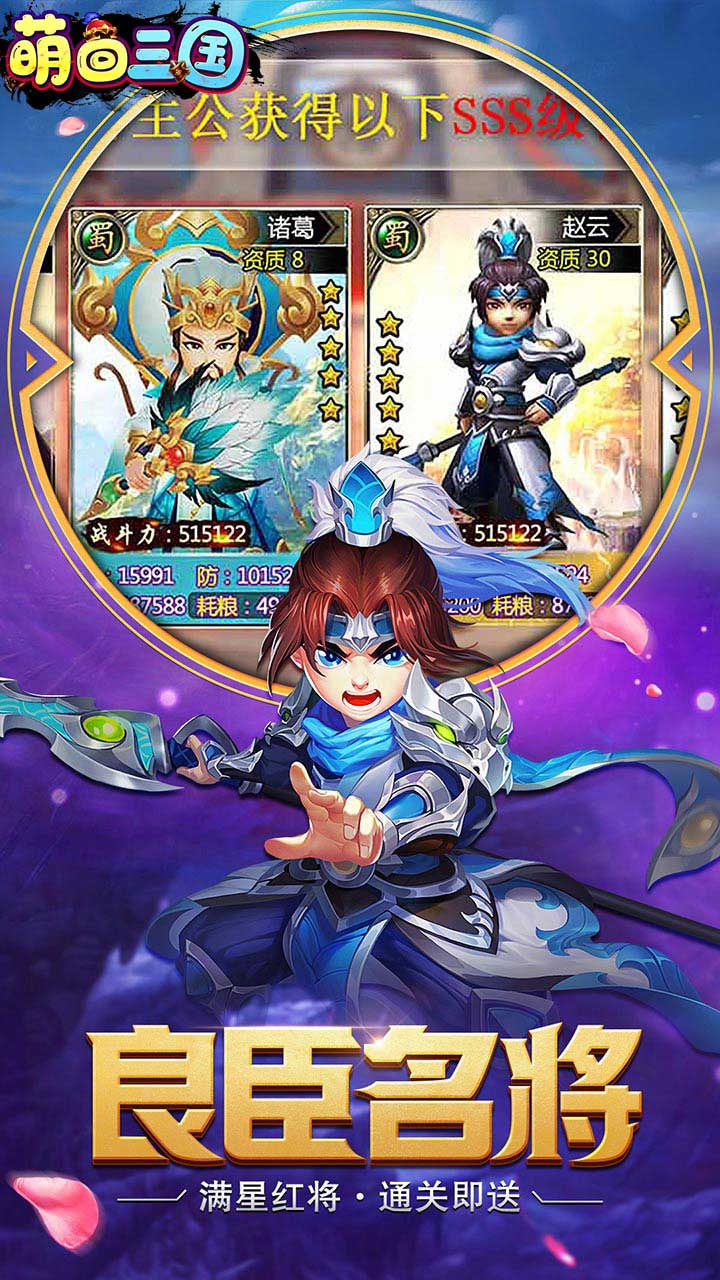 1、小巧清新的三国可爱画面,提供完美无比舒适的游戏环境;