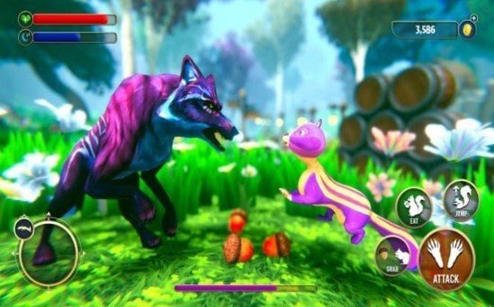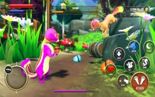 3、松鼠在充满植物橡树的卡普兰森林中等着您,模拟疯狂的松鼠,您可以玩松鼠游戏。