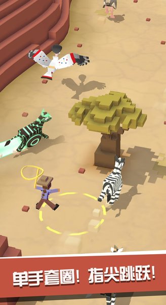3、一路上除了各种障碍物之外,玩家还会遇到许多动物,而利用手中的绳子玩家可以捕捉这些动物。