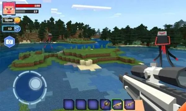 像素世界射击模拟器尽管采用复古像素风,但是丝毫不影响整体玩法带来的刺激感,玩家需要控制自己的像素人来进行冒险,开放的世界地图中会出现很多怪物,你需要多多收集枪支子弹来将它们消灭,达成成就之后还可以领取金币,去兑换更多装备。