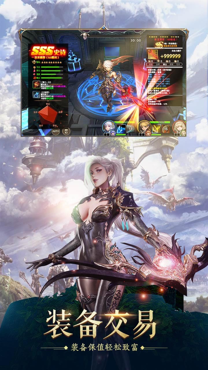 在远古时代展开一场冒险战斗之旅,选择你的人物和角色进行养成,获得极品神装然后去pvp的玩法,上线领取ssr英雄