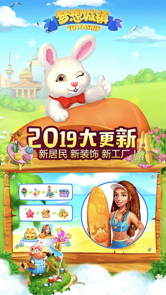 全球知名的模拟经营游戏梦想城镇2019年首次大更新! 这个寒冷的冬天,在游戏中体验热带度假的快乐!新居民——冲浪少女李霞带来超多探险活动,水下寻宝,空中挑战,探索恐龙世界!多达十余款全新装饰,花束工厂、花朵配方、全新头像等你收集,还能和好友互赠礼物和装饰,快来一起打造最美度假胜地吧! 从恬静的小农场到多元化的国际化大都市!梦想城镇,全球上亿玩家的共同选择!