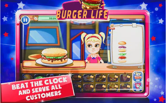 购买新的食材、饮料甚至新物品来装饰你的汉堡店,让它变得更好!粉刷墙壁、更换地板、购买新托盘、灯等等!随着游戏越走越远,客户需求变得更加复杂,您可以及时为客户服务您是否提供最好的服务?