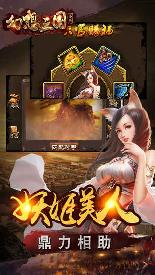 《幻想三国》是一款角色扮演类游戏。古典唯美的画风,给你别样感受。众多历史名将俯首称臣,再现旷世奇才之间的精妙对决。华丽的技能特效,主动招数精妙又不失霸气,被动技能特征鲜明。完美的武将养成体系,飒爽英姿尽数展现,更有妖姬陪伴您征战四方