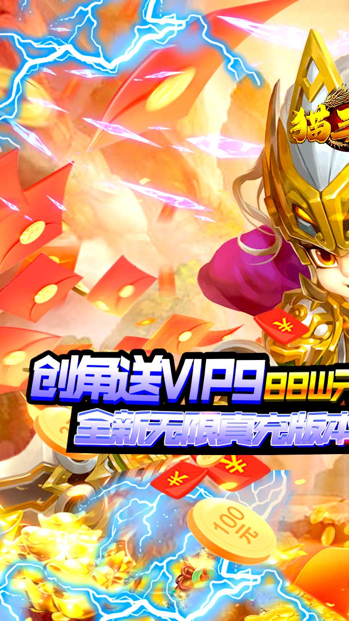 《猫三国(送真实充值)》是一款以三国时代为背景,深刻打造放置养成的游戏大作,丰富多样的对战玩法让你体验最具策略的放置卡牌玩法,它同时是一款极具策略、挑战智商的手机游戏,它玩得不只是数值压制。你的培养思路、武将搭配、战略布阵配合才是你纵横三国的关键!全新真实充值版本,游戏内充值全免费激活,创角送VIP9、88W元宝、50连抽、500W金币。