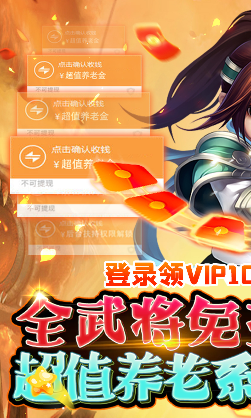 ★登录送VIP10,元宝*50W、10000点养老金,满星赵云等你买,极品神将随意抽~
