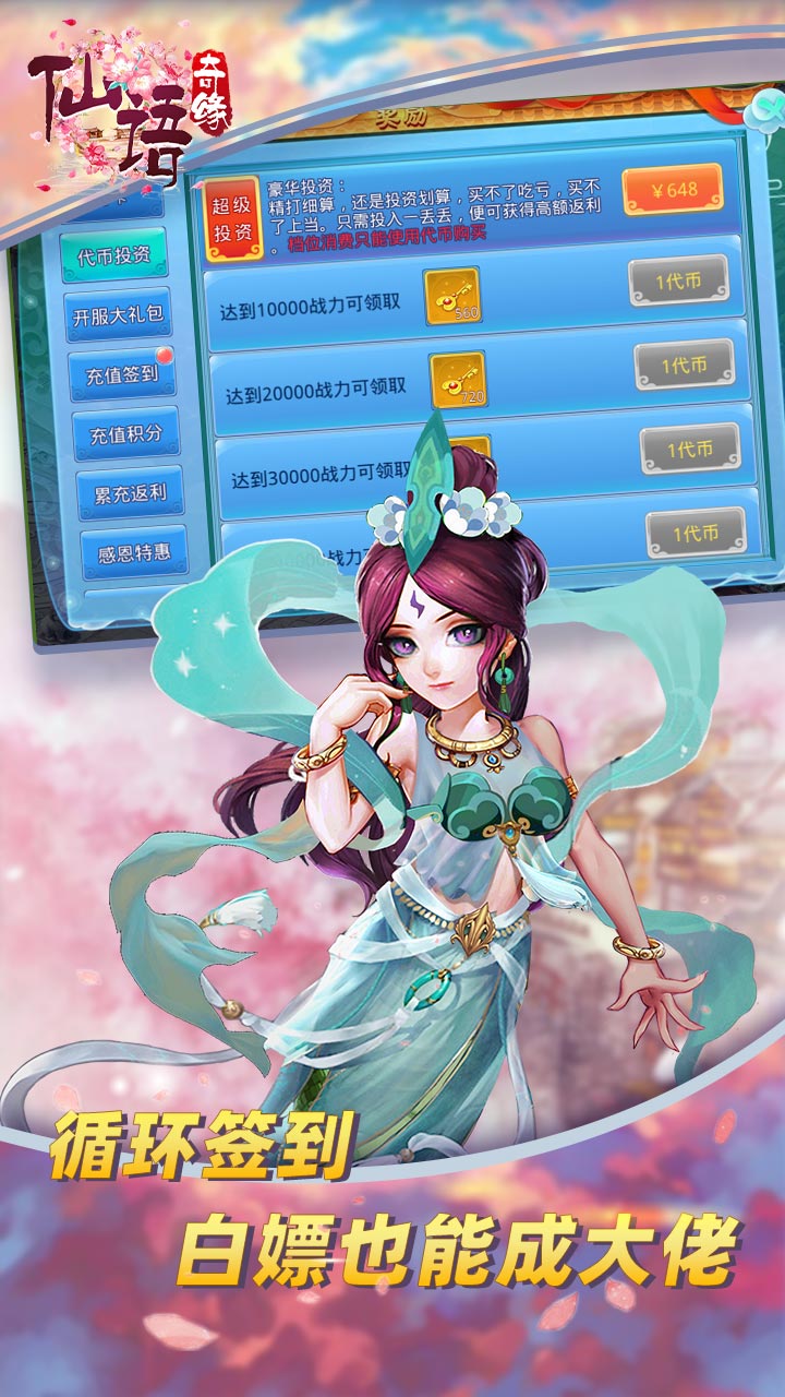 登录好礼:玩家连续登录送大礼,每天都赠送价值超过100元的道具以及金币奖励,第七天和第十五天直接赠送圣兽一只。