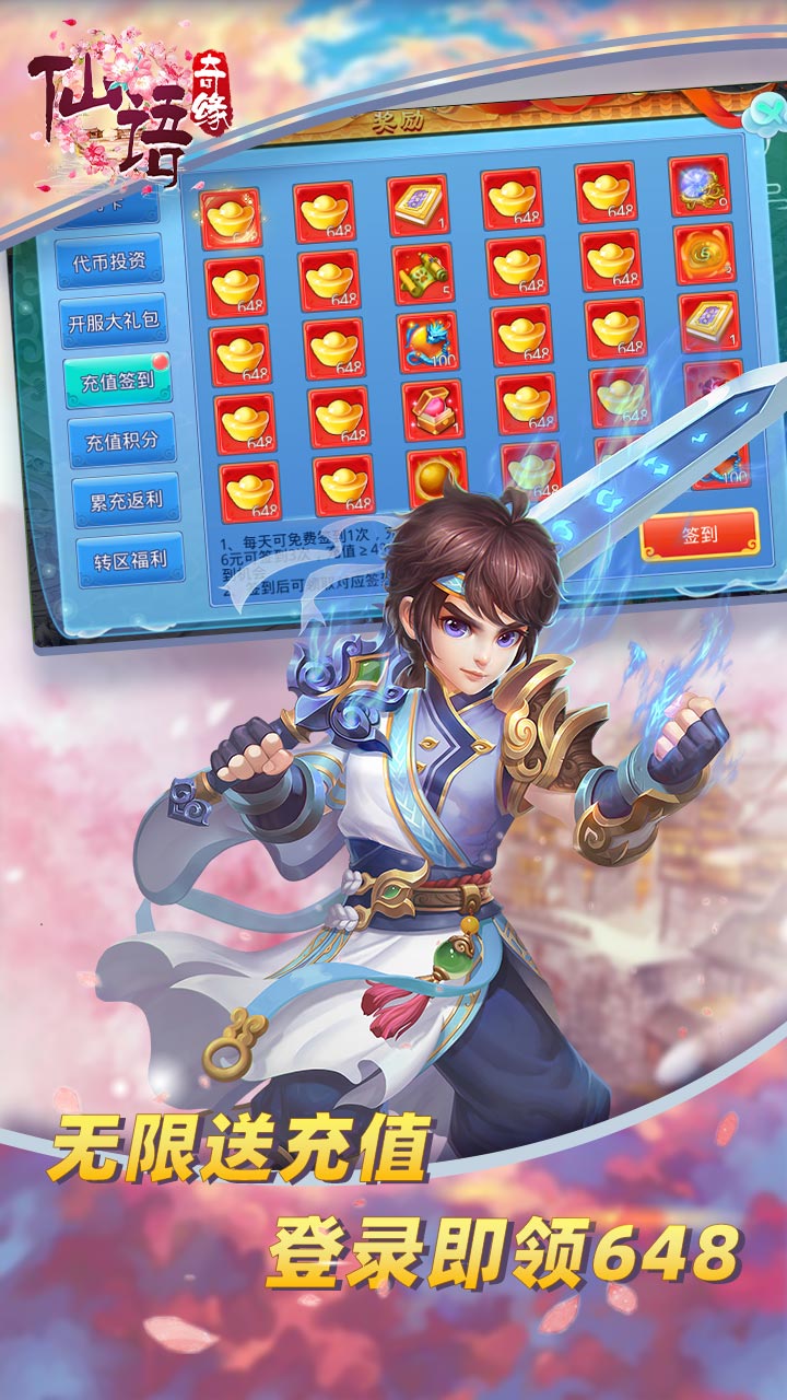 首充大礼包:在游戏中首次充值即可获得萌宠:更加珍稀的圣兽小孙以及双兽魂超级葫芦、百万经验丹、高额代币等高级奖励(月卡、年卡、至尊卡、购买礼包都计入首充)