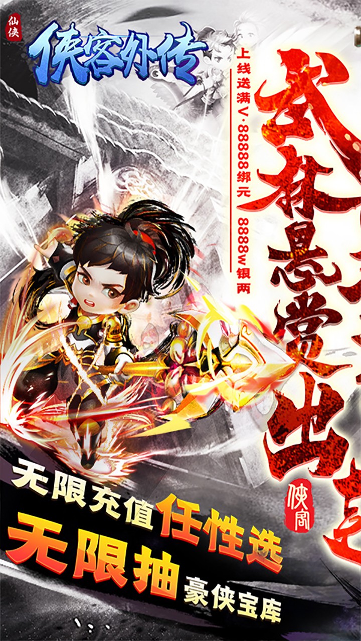 《侠客外传(悬赏无限充)》是一款大型即时战斗ARPG侠客手游,上线即送满V,海量充值卡,88888绑元等豪华礼包,每日送海量豪侠秘钥,豪侠宝库无限抽!丰富悬疑的剧情、惊险刺激的战斗,更有海量充值卡让人沉浸其中。其精心制作的剑仙职业引领情怀,打造全新的仙侠风游戏!虚拟仙侠世界,体验2.5D仙侠手游,尽享豪充快感,在游戏的旅途中不断成长,从不一样的角度体验豪侠般人生。