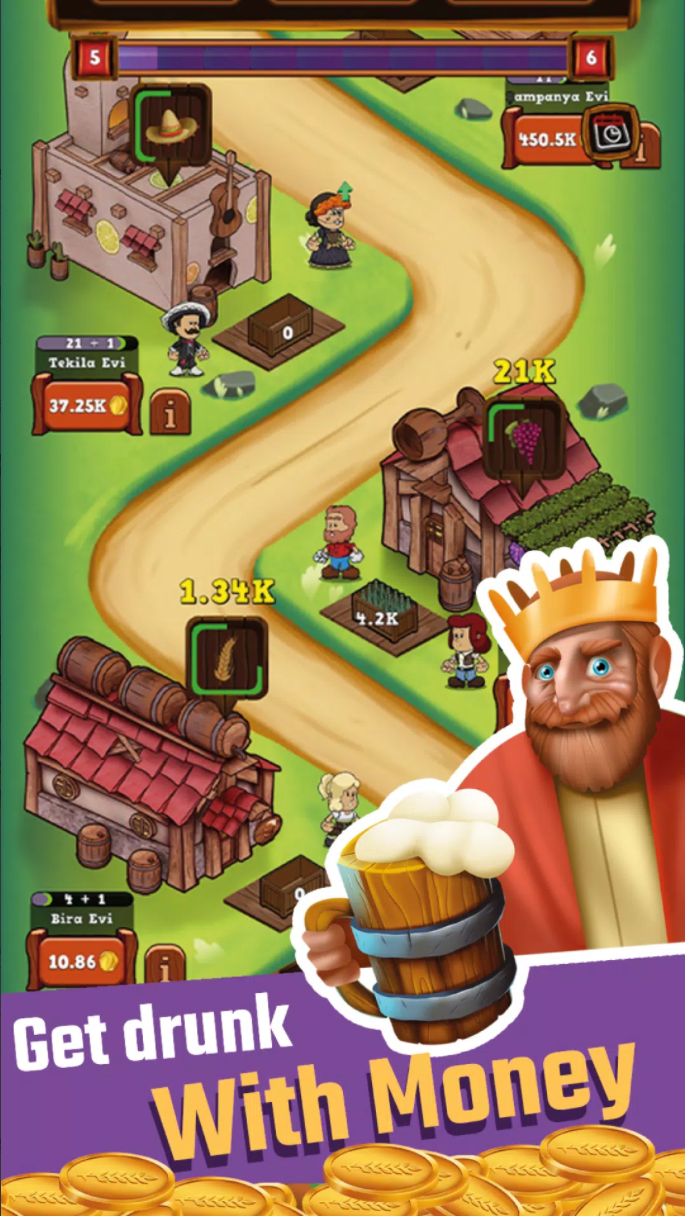 然后用钱买更高级的酒,生产更高级的酒,得到更多的收入,这样就可以赚到满满一壶了