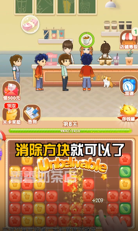 2、玩家制作奶茶,经营自己的奶茶店,制作即将倒闭的奶茶。开店,扭亏为盈