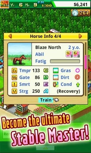 顶级跑马场(Pocket Stables)是由日本知名厂商开罗游戏所精心研发的首款以养育赛马为主题的模拟经营类手游。游戏采用简约的像素风设计十分小清新,操作简单容易上手,丰富的游戏内容和有趣的玩法将带给玩家乐趣无穷的游戏体验!