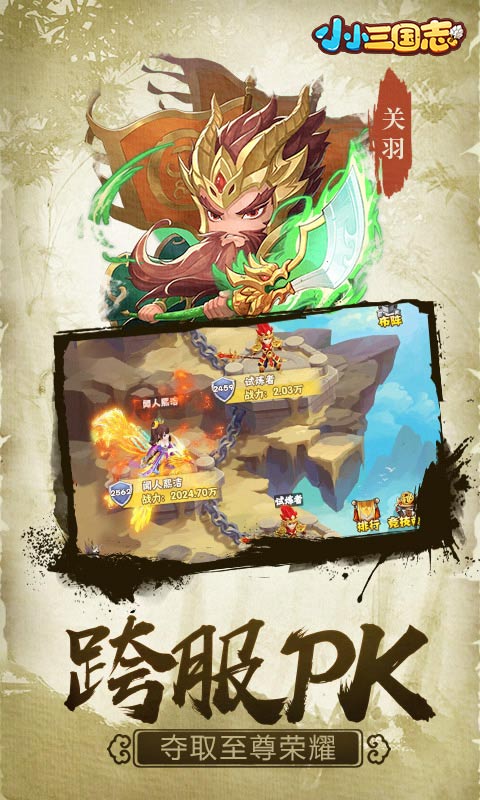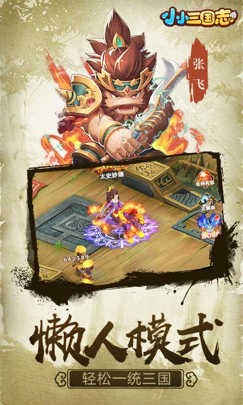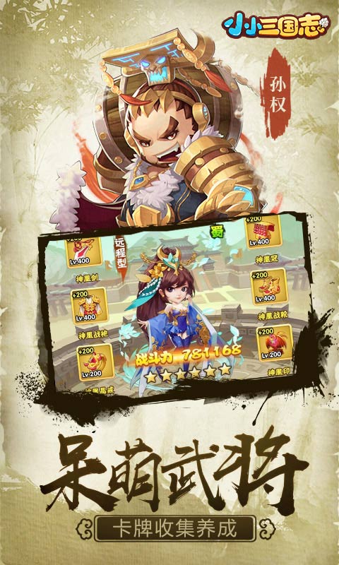 趣味三国冒险,爆笑武将养成!《小小三国志》是一款Q版三国卡牌手游,脑洞清奇,画风呆萌,三国名将通通都到碗里来!懒人模式,轻松挂机升级打Boss,在上班的同时一统三国;精美卡通渲染,流畅骨骼动画,鲜活可爱的人物让人爱到无法自拔;多样玩法其乐无穷,给你活力四射的愉快三国体验!