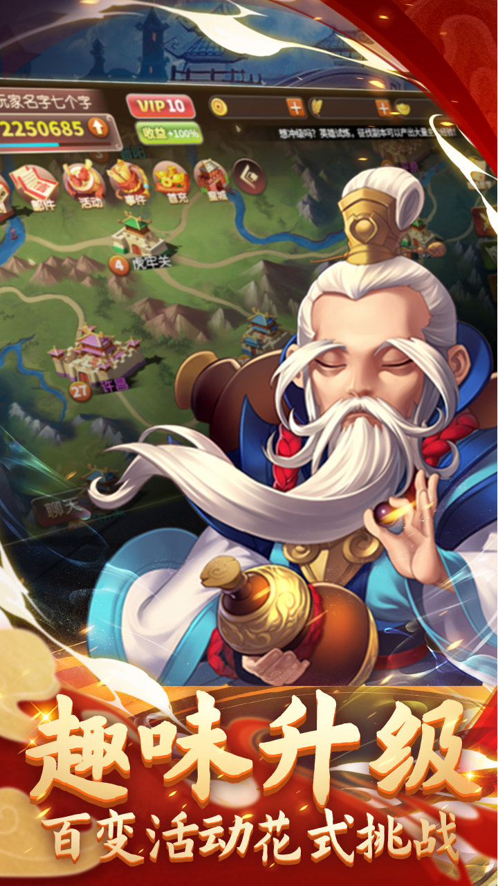 《三国之乱舞》是一款以三国乱世为背景打造的回合类挂机手游。画面有趣,玩法升级!游戏以Q版武将形象和简单的操作,酷炫的坐骑与翅膀,还有唯美的外观系统。其他还拥有神兵、法宝、宠物等各种轻松又强大的功能系统为大家再次描绘一个不一样的三国!龙腾于天,长吟天地,谁是王者!