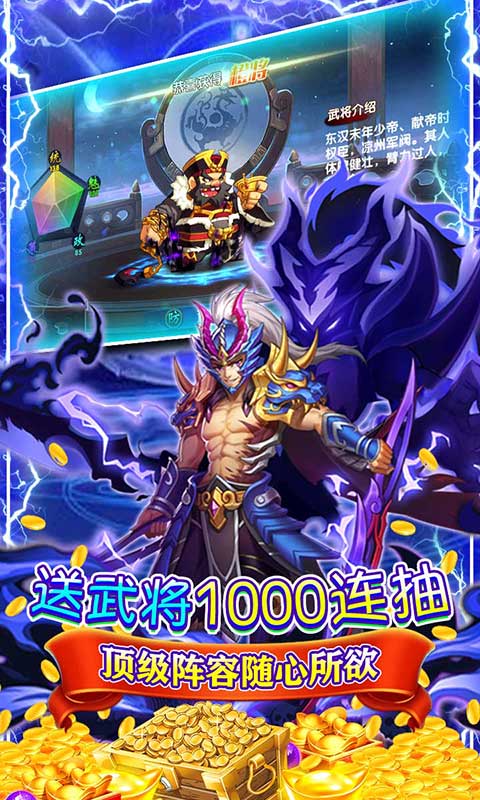 2、深度养成玩法,游戏中里面的每一个武将都需要你细心的进行培养,升星、进化、升级等,让你武将横扫四方。