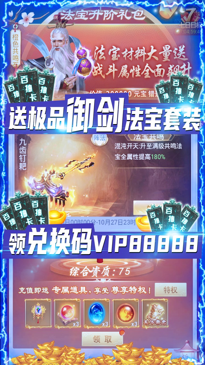 玩家在游戏中扮演修仙者,通过副本探索、资源争夺、洞府收益等玩法获取各种材料和资源,用以提升装备、获取法宝、收集飞剑,并以此来提升自己的战斗力,最终达到天人合一境界。