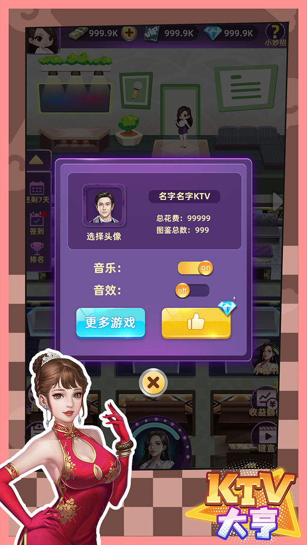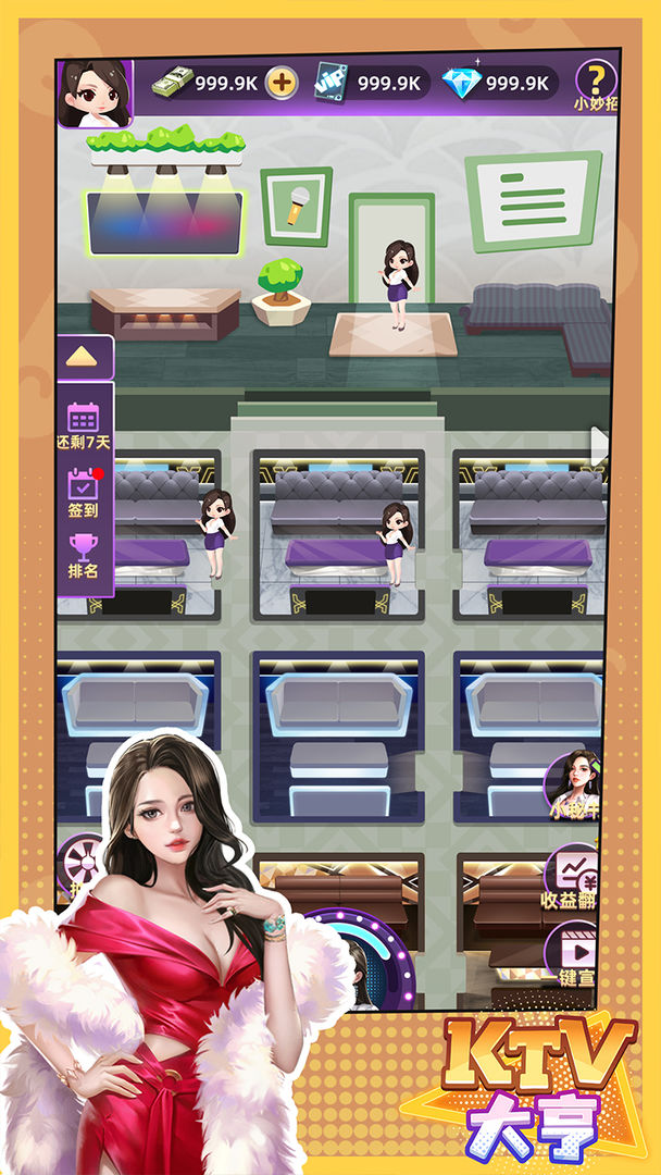 从简单的入门KTV开始白手起家,建立包厢,升级设施。从宣传拉客到开房点歌,