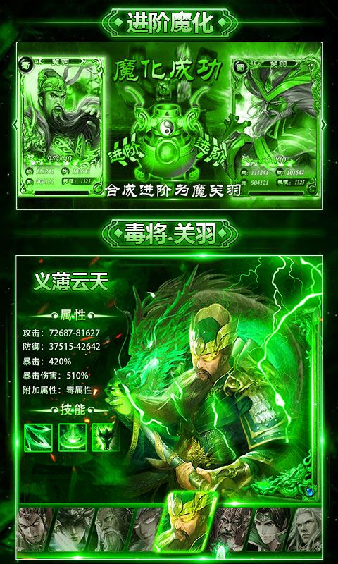 1.武将的组合搭配非常具有可玩性,属性不同,可有万千组合。