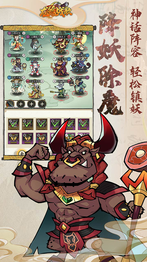 龙骑战歌是一款放置回合制卡牌手游。游戏以古代神话为背景,采用水墨画风,将神话人物以卡通形象进行展现,打造了一个玄幻奇妙的神话世界。