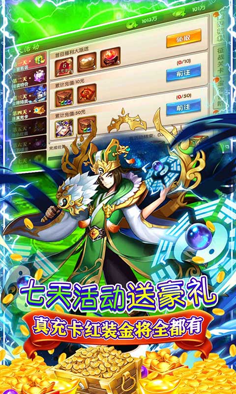 4、七天活动送真充卡、红装、金将等顶级奖励