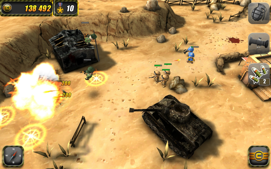 用光滑的触摸控制来移动你的小队,释放枪林弹雨和用手榴弹、火箭导弹以及空袭消灭敌人的坦克。
