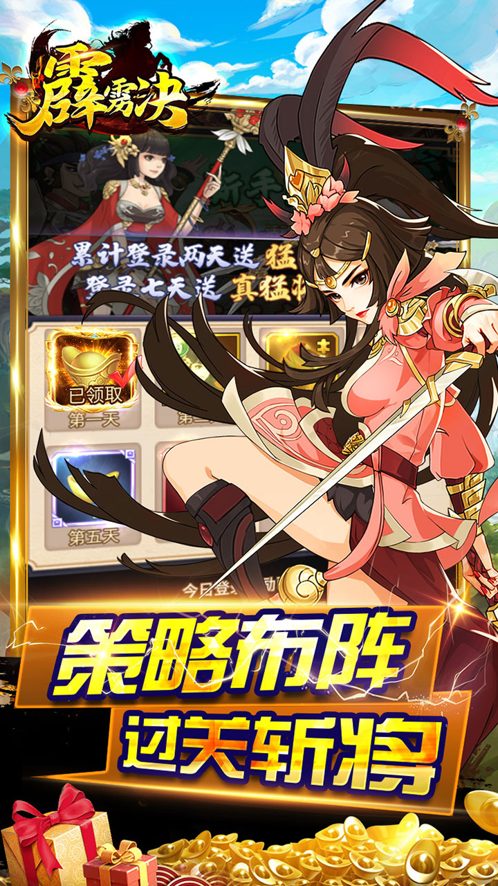 《霹雳决》是一款以三国时代为背景的经典卡牌游戏,马超,赵云各类传奇人物带你走进三国纷争之地。在游戏中你能够对武将进行全方位养成以及收集,游戏内设有各种三国经典战役关卡,通关战役,就能领取超多道具奖励,带领三国群雄,逐鹿天下。