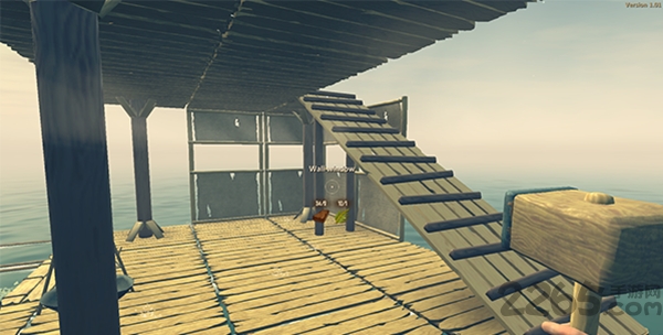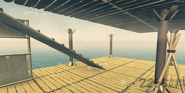 5、开局在一块2×2的木板上,并且自带一个钩子。开局时首先要做的是想办法够到尽量多的废铁和木头,做成净水器,因为水分下降速度较快。