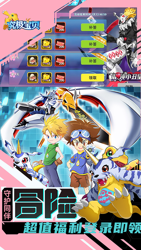 此外,究极宝贝官方正版为玩家们准备了丰富的福利活动,上线就能领取丰富资源礼包,免费升级VIP,领取海量VIP礼包奖励,更有上千充值卡、GM特权相送,领取大量钻石,解锁各种道具,轻松提升战力,养成最强数码兽。有喜欢数码宝贝的小伙伴不要错过哦,可以到本站下载体验一下!