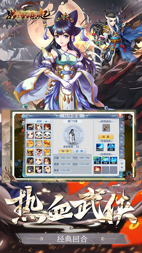 战神崛起官方版是一款Q版武侠回合制手游。玩家进入游戏后将扮演一名武侠学徒,踏入江湖世界,与各路高手切磋武艺,学习武学功法,不断提升自己的武学能力,逐渐成为武侠高手。游戏以主线剧情玩法为主,有着丰富的剧情任务,玩家需要通过完成任务,获取丰富资源奖励,提升等级战力,解锁门派、技能、副本、组队BOSS等更多有趣玩法。