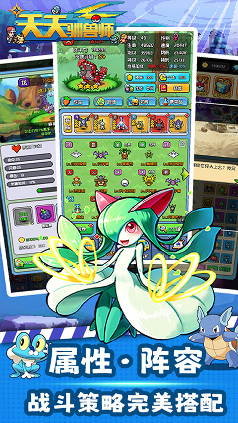天天驯兽师是一款放置挂机像素精灵手游,有着超多系列宝可梦精灵以及多样培养玩法,训练师天赋自由加点,让玩家可以和精灵共同进步。
