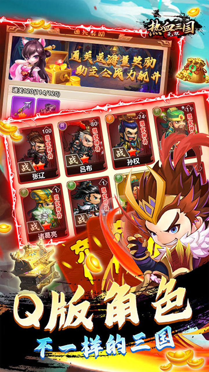 《热血三国无双(GM神将万充)》是一个Q版三国的回合制手游,Q版和三国的结合,使得玩家在游玩途中体会到征战三国的乐趣!天命之战,王者巅峰,无双争霸等多种玩法,有胆你就来!在游戏里体验三国的爱恨情仇,侠肝义胆,培养玩家的足智多谋,方可破除三国鼎立的局面,统一三国的大任就在余身!