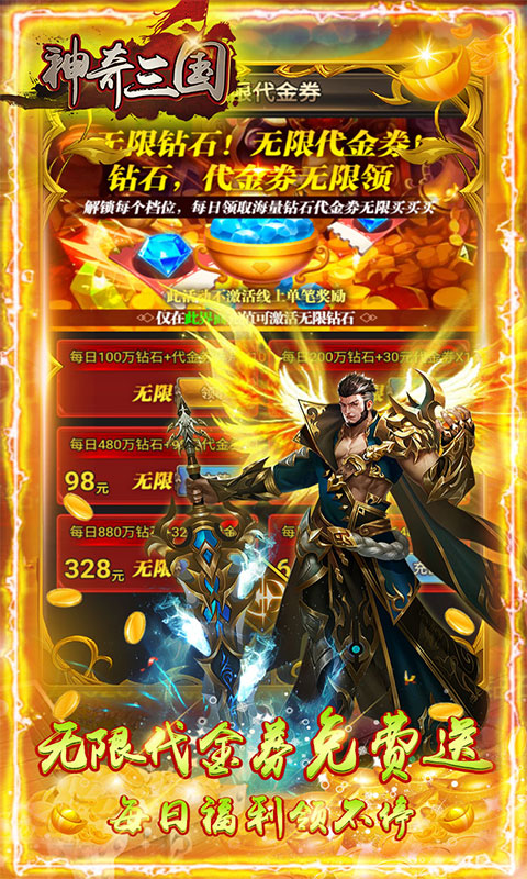 《神奇三国》是一款是一款多线养成的ARPG游戏,以圣经并起为背景,讲述延续千年的神、妖、魔与人类之间的纠纷,精美细致的美术风格,给玩家呈现了一个唯美另类的魔幻世界。上线上线送满GM8、钻石500000,金币*10亿