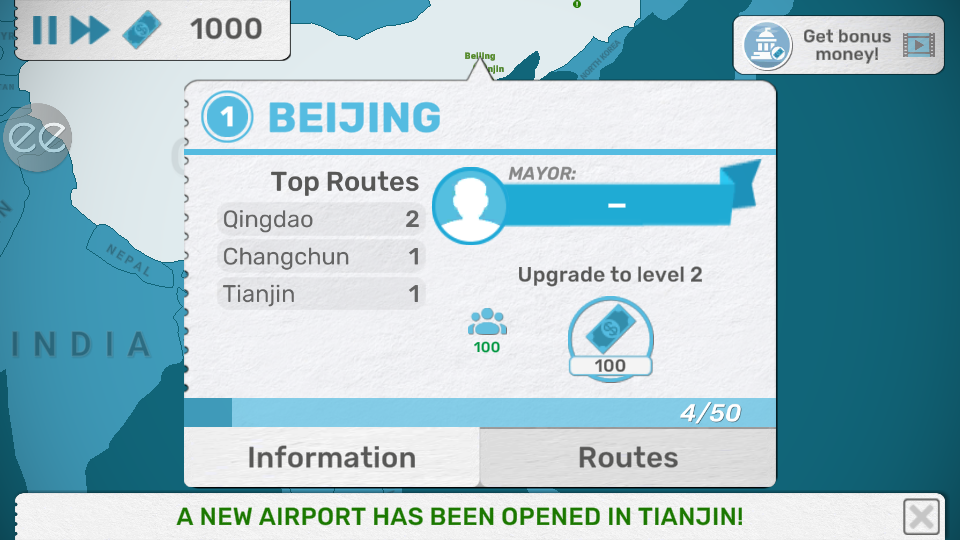 机场手机游戏具备优秀的客流量系统软件。全部的城市全是依据他们的真正仿真模拟设计方案的,人口数量数据也是真正的。人口数量数据越多,越多的人期待搭乘您的飞机。每一个旅客都是有自身的到达站,要是没有直通线路,她们将乘坐中转航班。