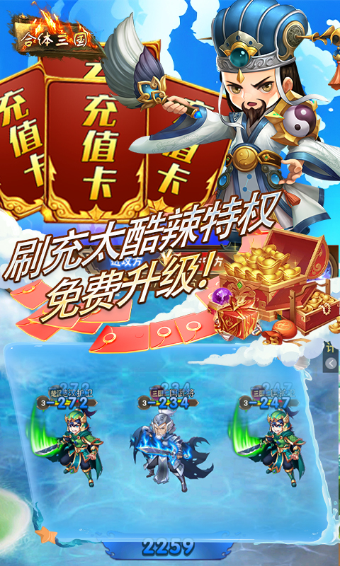 合体三国是一款卡牌回合制手游。游戏以历史和神话为背景,将三国、隋唐、神话等各时期的英雄角色融入其中,玩家将扮演一名小卒,通过招募探索,收集英雄人物,组建多样英雄队伍,踏上成为大将军的征战之路。