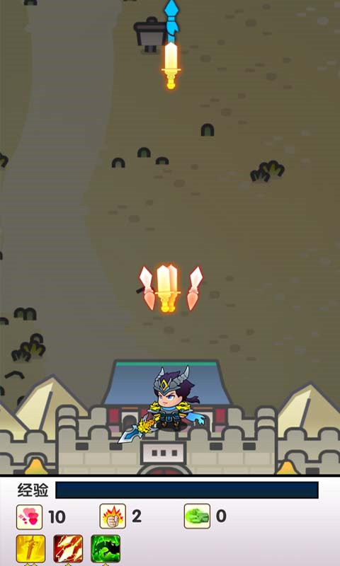 1、进入游戏后,角色会自动攻击,不能让敌军碰到城墙,否则会游戏结束。