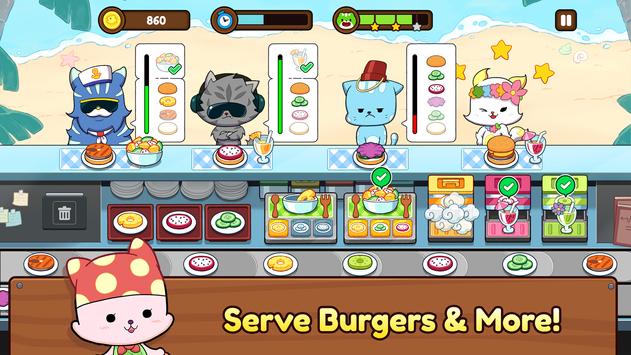 跟随我们的汉堡猫猫穿越岛屿提供美味汉堡的冒险经历!体验三只可爱的猫经营自己的汉堡店的故事。