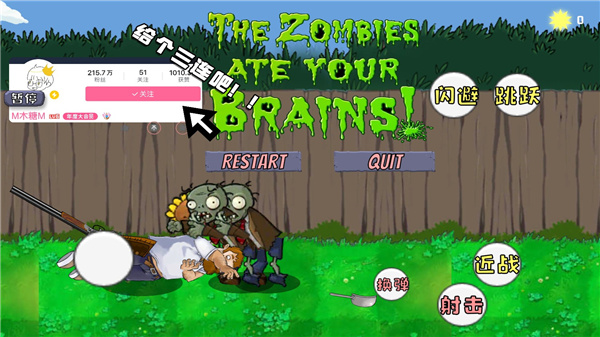 1、操控戴夫直接横扫前方的僵尸,疯狂射击或者直接用枪杆子暴击;