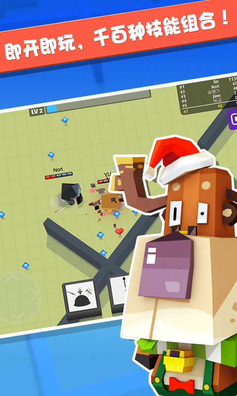 1、玩家们将能自由选择自己的武器和技能,在大型随机生成的游戏场景内展开激烈的厮杀;
