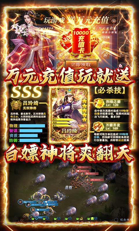 2.通关副本赠送海量充值卡,在线即送无限抽奖卷,每日活动领取200抽!