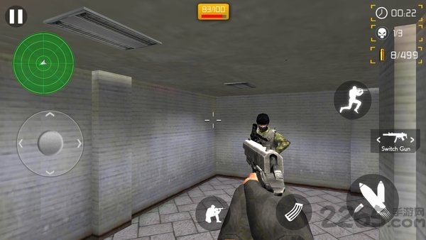反恐枪火射击手游成为一名优秀的特种兵,带上你的武器跟随队伍闯入目标区域,展现你惊人的作战能力,灵活利用战术策略,消灭所有恐怖分子,完成作战任务。完成任务后,您将收到金币作为奖励。使用金币,你可以购买新的枪支和一些其他设备。