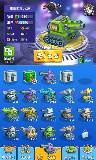 2、经典而有趣的坦克对战模式,增加了坦克合成升级模式,非常方便快捷。