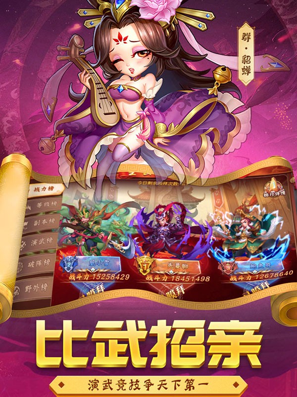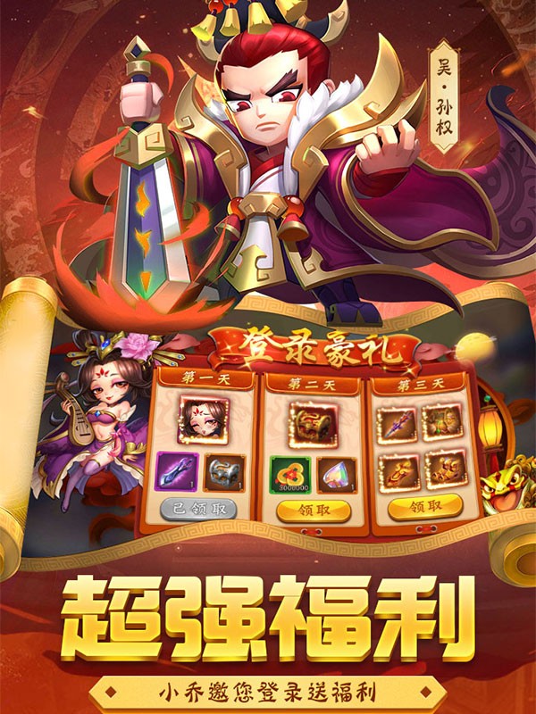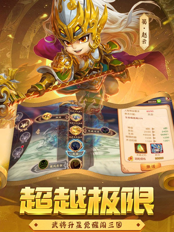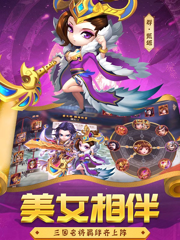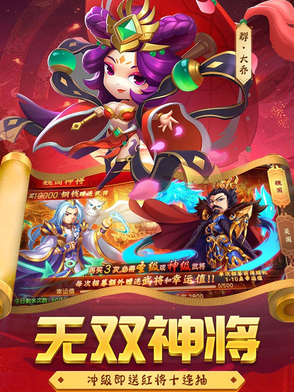 3、上百名三国武将,同样的强力,不同的技能。每名武将的特色技能都拥有不同的效果,排兵布阵挑战策略极限。
