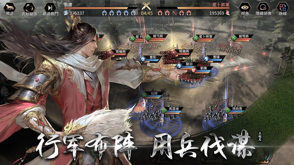 2、玩家之间的部队征伐,盾枪象骑弓弩的策略,武将技能命缘的搭配独创双模式指挥系统,完美掌握战斗细节,感受运筹帷幄的快感