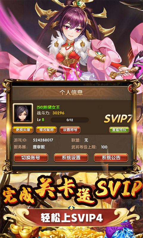 4、完成关卡送SVIP,边玩边升VIP,轻松惬意