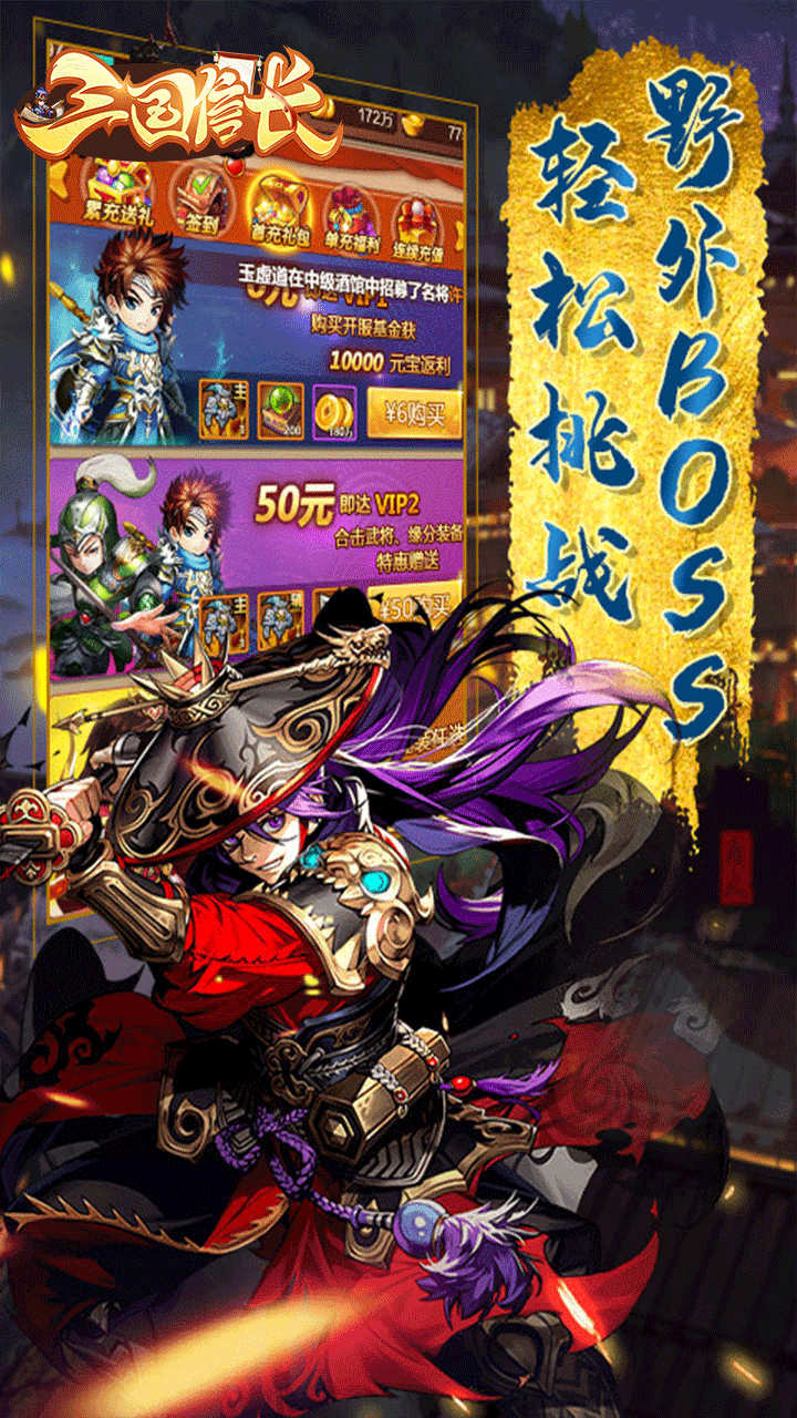 论画面,论技能特效,《三国信长(福利版)》专治各种不服。满屏强劲打击感让人大呼过瘾,PK竞技多种玩法融为一体,带你领略别样乱世三国争锋,演绎最炫战斗风。野外BOSS,轻松挑战,专属剧情,武将觉醒。三国风云乱,华夏巅峰战,心有鬼谋,鏖战九州!