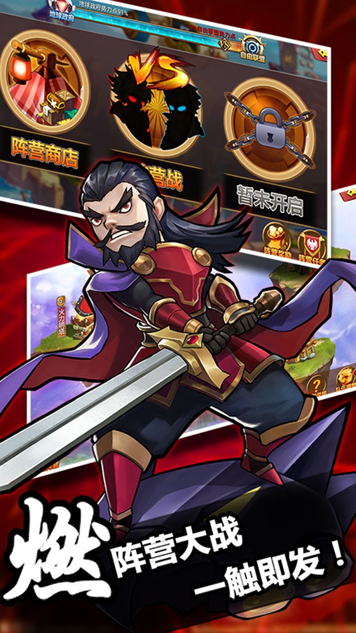 1、经典的乱世三国,众多历史武将高度还原,组建自己的队伍驰骋天下,成就霸业;