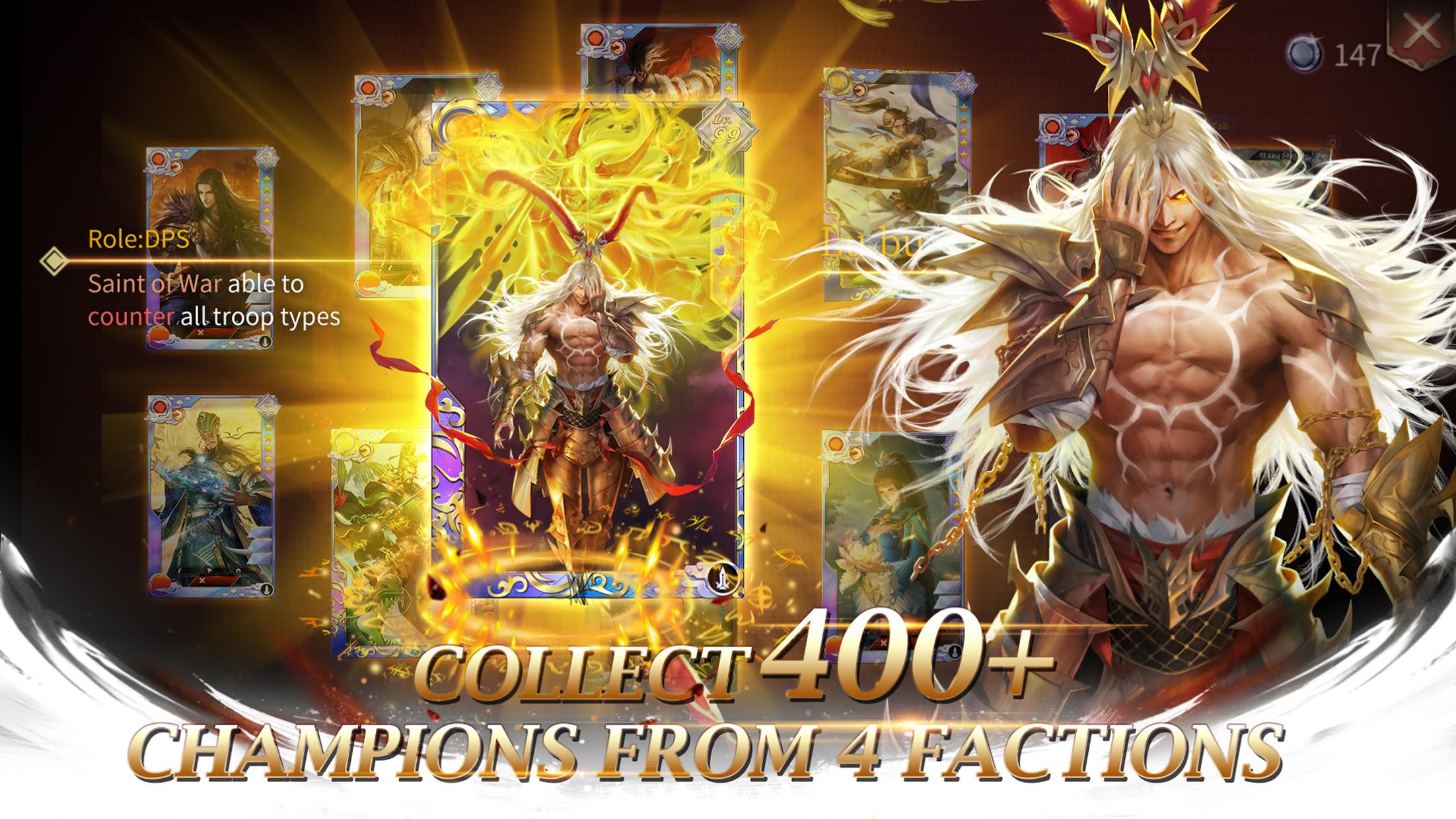 由世界各地著名艺术家刻画的300多个“三国演义”人物。每个英雄都有自己独特的技能。胜利的关键是选择正确的阵容。